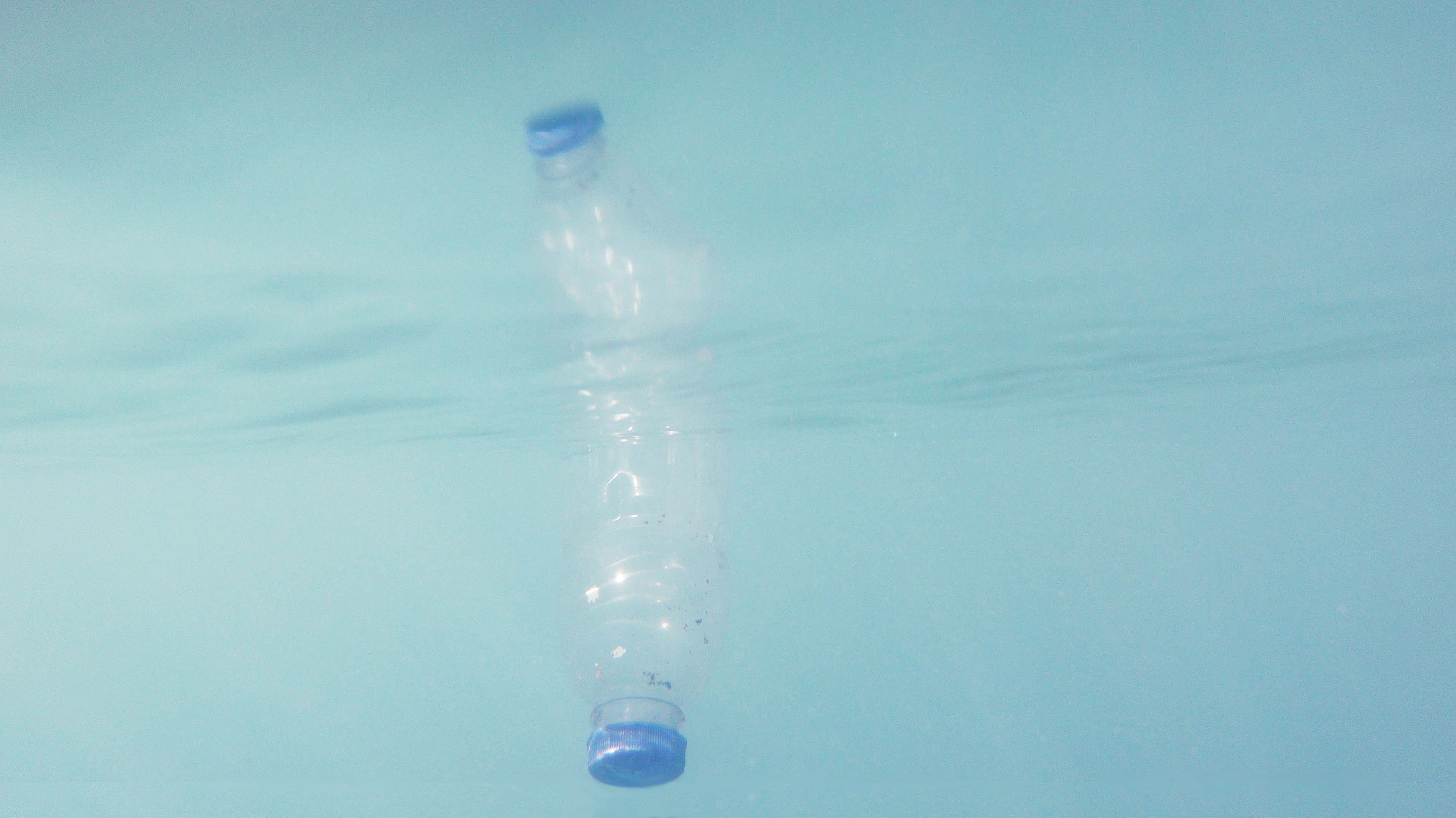 Underwater view of a drifting bottle and its reflection on the surface. © ANDRÉS CÓZAR, www.marinelitterlab.eu