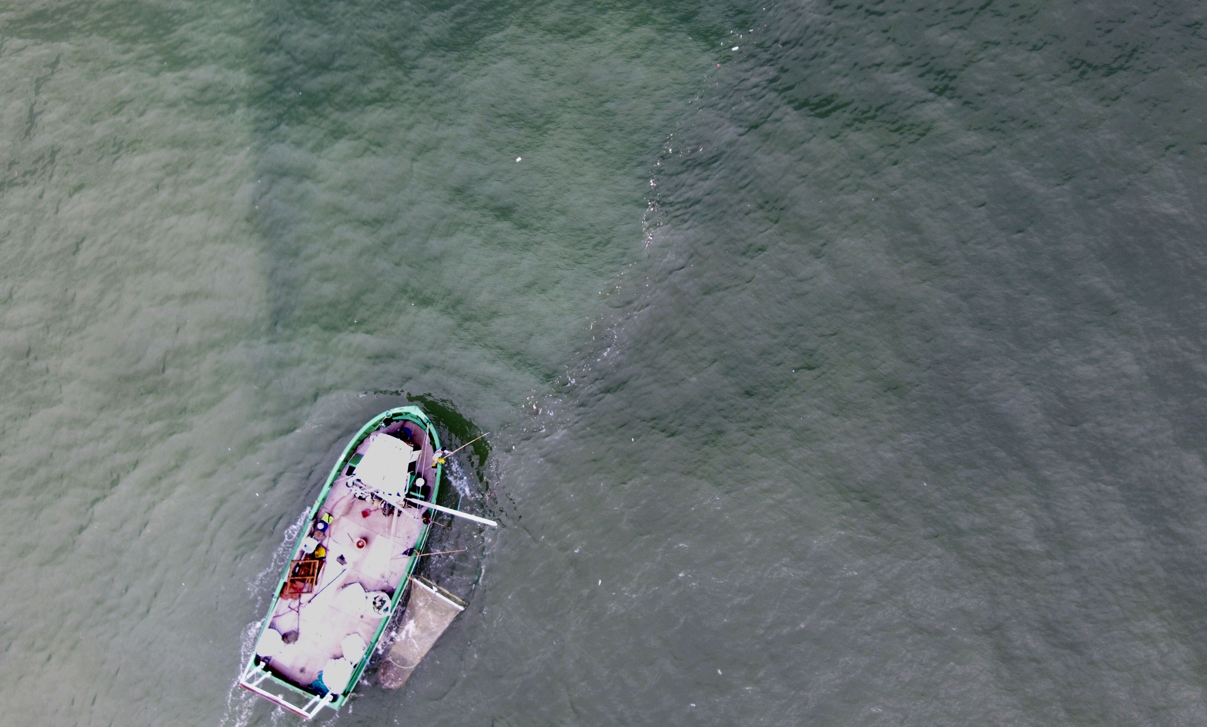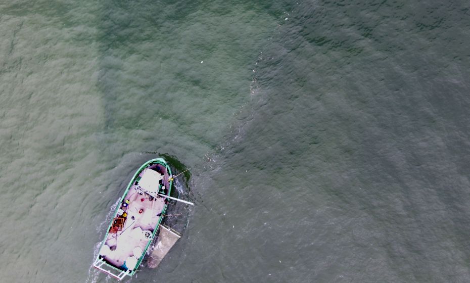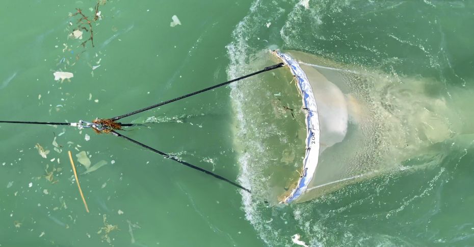 Neuston net sampling a litter windrow in northern Adriatic Sea, Italy. © GIUSEPPE SUARIA & ANDRÉS CÓZAR.