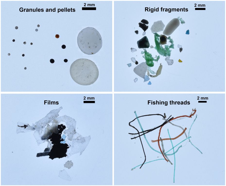 Images of different categories of microplastics found in the Arctic Ocean in 2013. Granules are grouped together with industrial raw pellets, although the former are usually smaller than pellets. ELISA MARTI & ANDRES CÓZAR, www.marinelitterlab.eu