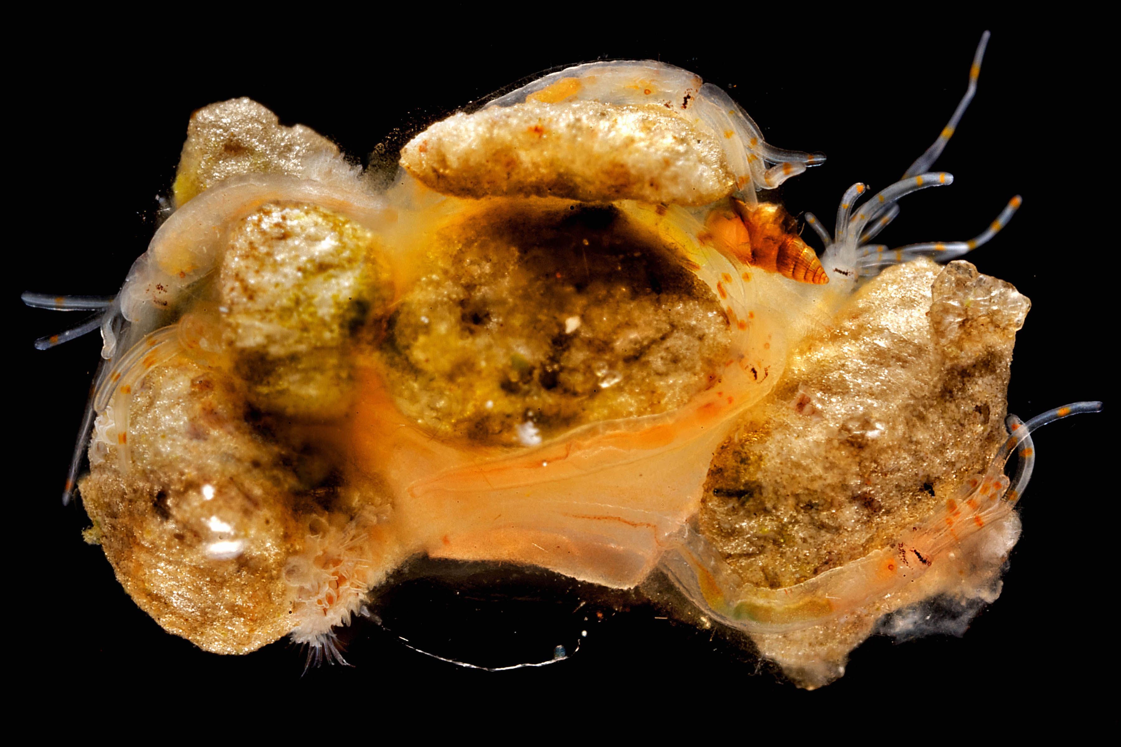 Fragment of expanded polyurethane foam collected from the surface waters of the South Pacific Ocean during Malaspina 2010 Circunnavigation. The 3-cm fragment is colonized by tentacled terebelid worms and shelled gastropods. COVER of PNAS journal © JOAN COSTA & ANDRÉS CÓZAR.