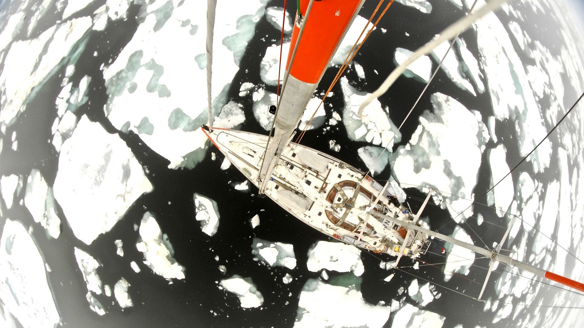 The Tara research vessel sails through ice chunks in the Arctic Ocean. Credit: © FRANCOIS AURAT, Tara Expeditions Foundation.
